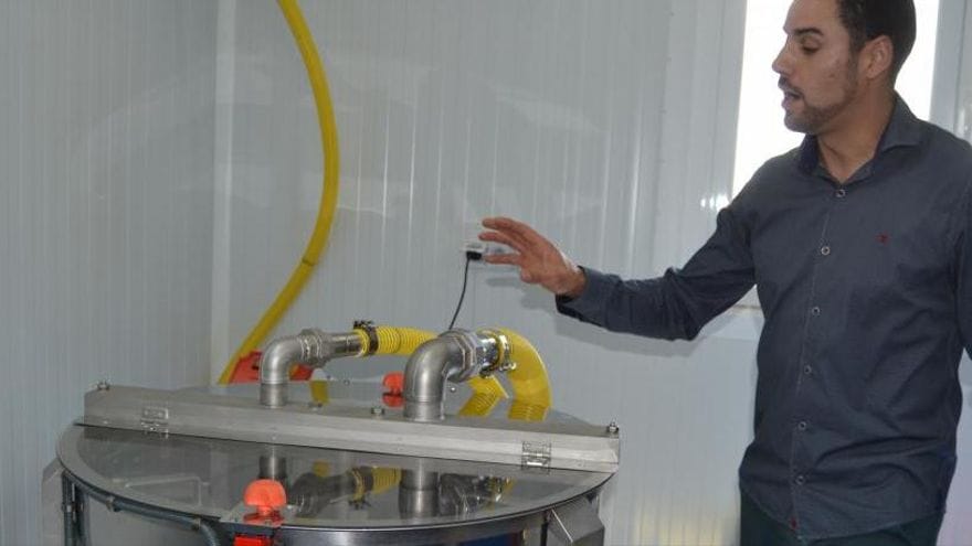 Continuamos hacia el muelle de descarga: vista de panales de cera vacíos y con miel e introducción de la extracción de la misma en la sala de extracción: explicación de forma de extracción de la miel y funcionamiento de la maquinaría.