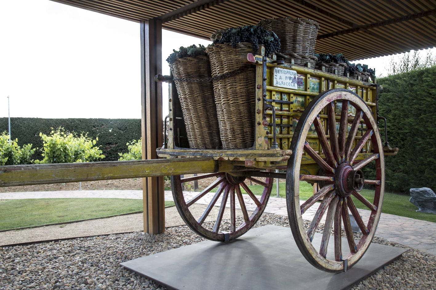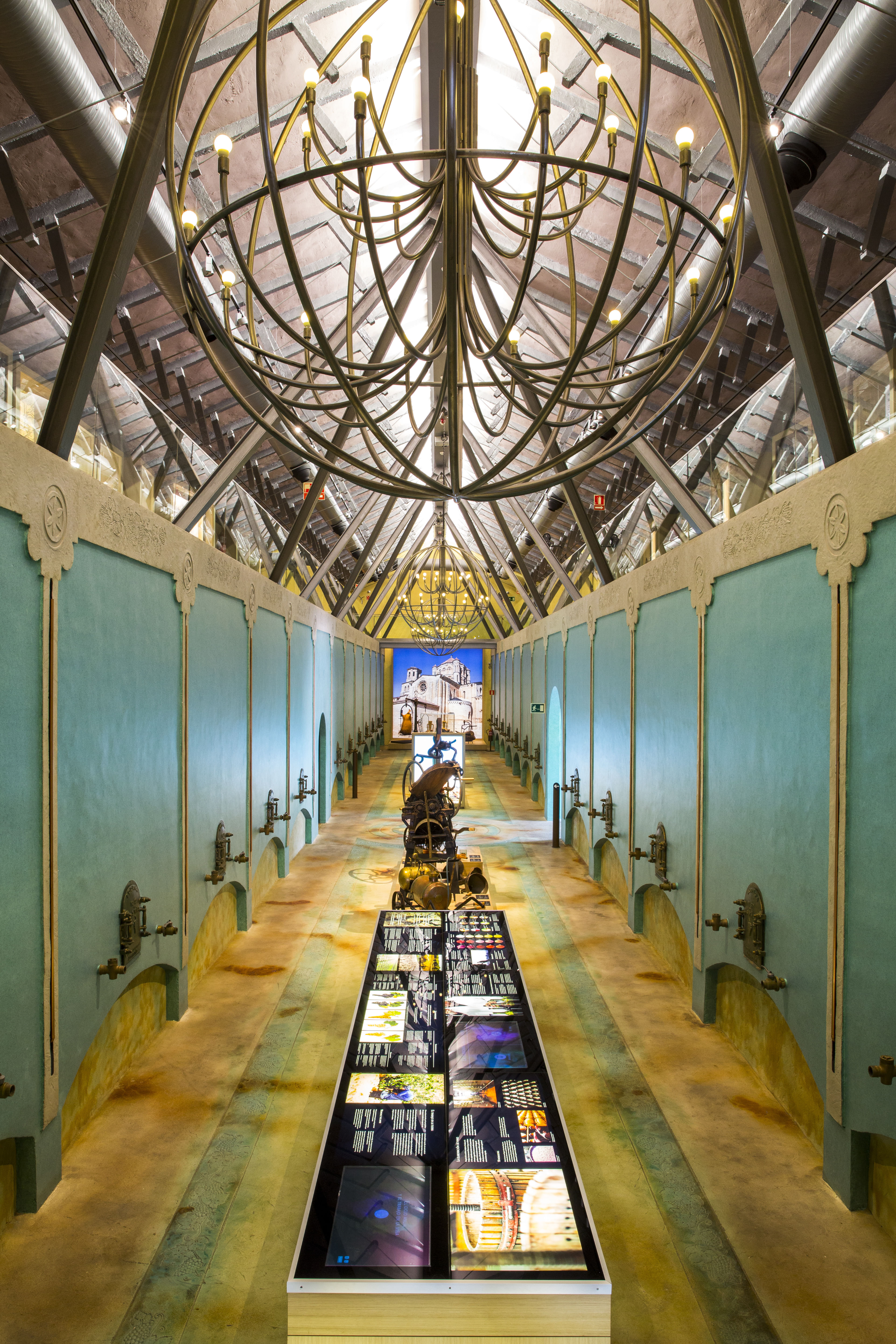 El conjunto son más de 1000 m2 cubiertos que albergan piezas, reproducciones, audiovisuales y pantallas digitales que permiten una interacción directa. El exterior se completa con más de 2000 m2 de jardín que acoge las piezas de mayor tamaño en un original u bucólico espacio expositivo. Por último visita la sala de barricas de la bodega con más de 2500 barricas de roble francés y americano.